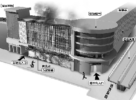 (1)火場情況檢測、調(diào)查依據(jù)現(xiàn)場調(diào)查核對,火災(zāi)區(qū)域1~2層超市營業(yè)區(qū)(1~1/12交A-E;B1~B14交A1~A11),該區(qū)域放有人量的易燒物品和一些日常生活用品。(2)重要構(gòu)件變形檢測